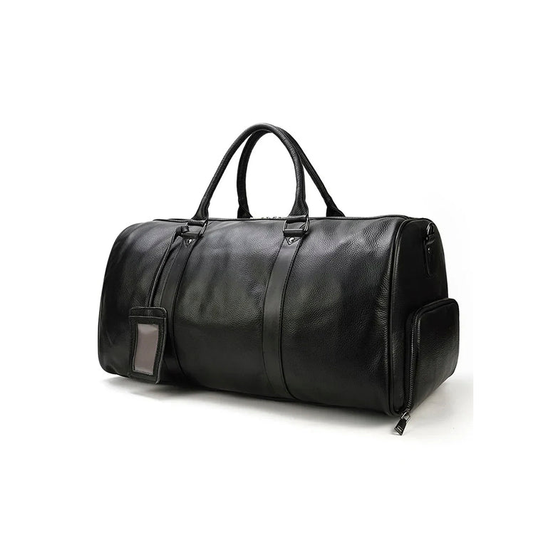 A Mala Bolsa Mala de Viagem de Couro Legítimo Personalizado Preto evoca a força primordial dos titãs da mitologia grega, seres de poder extraordinário que moldaram o mundo. Esta peça em couro Legítimo 100% bovino foi concebida para o homem que enfrenta cada desafio com determinação inabalável e presença imponente.